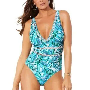 Nwt Swimsuits For All Lattice Plunge Sexy Cut out Tropical Print