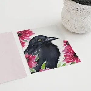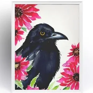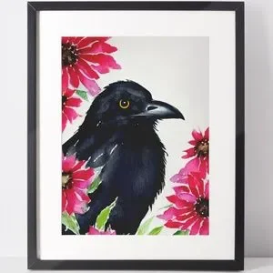 Wall Art Watercolor Floral Raven Crow Illustration Print Poster Card Unframed
