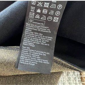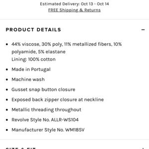 Material: Body - 44% EcoVeroTM viscose, 30% polyester, 11% metallised fibres, 10% polyamide, 5% elastane. Lining - 100% cotton.
