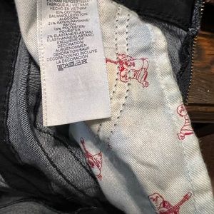 Sz L True Religion dark blue wash denim jumpsuit. Only been worn a few times. Zip front, versatile piece. Tapered leg, fabric feels nice with a little stretch. 62 cotton 21 rayon 15 poly 2 elastane. Front & back pockets. Measured lying flat: total length 59”, inseam 30.5”, across waist area 18”, pit to pit 20”. Smoke free home.