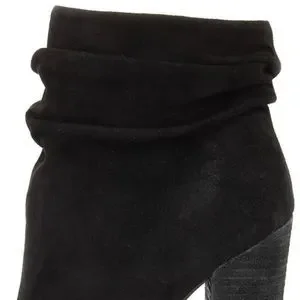 From Kristin Cavallari's line at Chinese Laundry! Genuine kid suede shapes a wonderfully soft peep toe upper with the perfect touch of ruching around the ankle, shaping a structured 4" shaft (with a 12" circumference around the collar). Black stacked wooden heel measures 4.25" (including tip). Lightly cushioned genuine leather insole and lining. Synthetic sole. Leather upper.