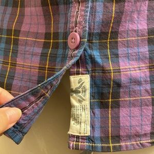 SOLD! SuperDry Co Purple & Blue Plaid Checkered Button Shirt w/Roll-Up Sleeves
