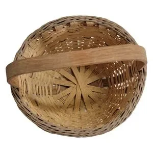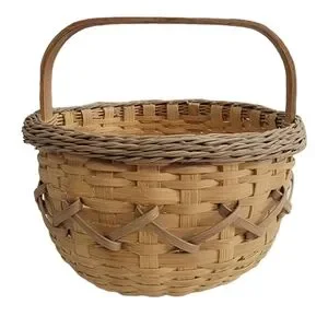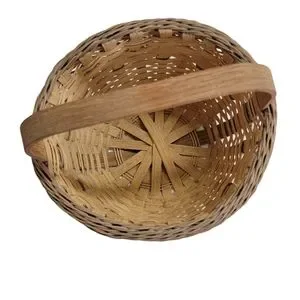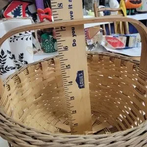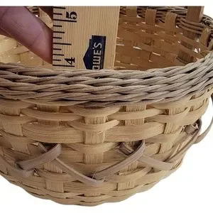 Basket Woven Brown Tall Single Oak Handle Decorative 8" x 7" Vintage Sturdy.