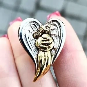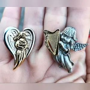 CAMCO Two Tone Mixed Metal Angel With Child And Angel With Harp Clutch Pins