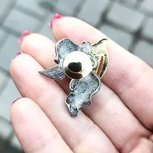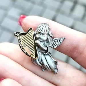 Pewter Angel with beautifully detailed gold tone harp clutch pin.