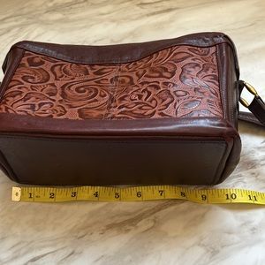 Vintage embossed brown leather purse cognac brown floral design. Excellent condition, See pictures for details .