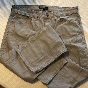 GUC Mens Banana Republic Slim Straight Jeans. I would list as excellent but there is a ink mark across the back pocket and a mark in the area of the back of the knee as seen in pictures. Gray in color size 32x32. Non smoking home