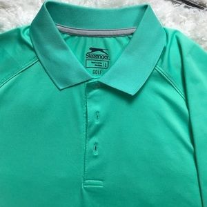 Men’s Mint Colored Slazenger Golf Polo Shirts Size Large NWOT. Soft breathable, Comfortable shirt. Great buy!