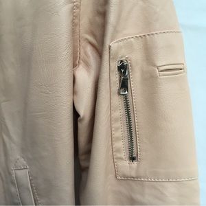 NWOT Large L Ci Sono By Cavalini Bomber Jacket Nude Vegan Faux Leather Women’s