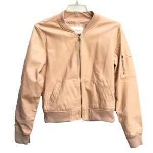 NWOT Large L Ci Sono By Cavalini Bomber Jacket Nude Vegan Faux Leather Fall Women’s.