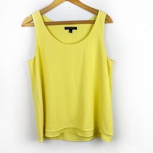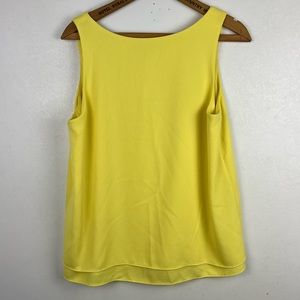 Banana Republic womens solid yellow sleeveless blouse. Scoop neckline. Layered detail. 100% polyester. Machine washable. Pull over.