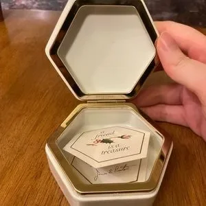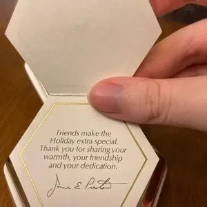Inside the white box and gold hardware is the original vintage note that reminds you or the recipient of this box the loveliness of friendship during the holidays.