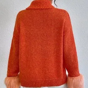 orange faux fur Cuff TurtleNeck Knit Sweater Top