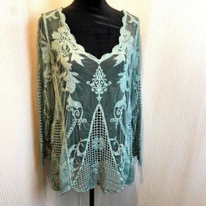 Simply Couture Sheer Long Sleeve Crochet Mesh Top/ Cover Up , Women's Size XL, Crochet and lace on soft mesh brings an updated vintage and feminine look to this top. Very soft to the touch and comfortable to wear. Wear it classy or dressy, wear it wild or boho.Unlined, Wear your favorite camisole or top underneath,