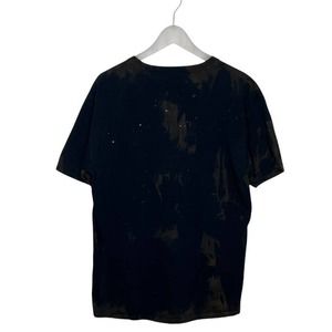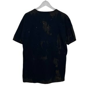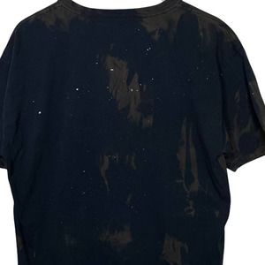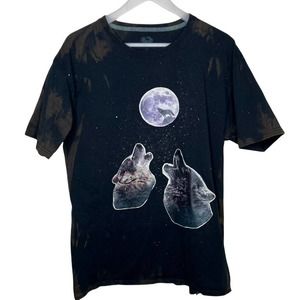 Custom made T-shirt. Bleach dyed Fruit of the Loom T-shirt (100% cotton and preshrunk) and features graphic of two wolves howling at the wolf moon.