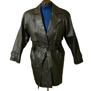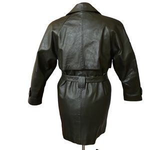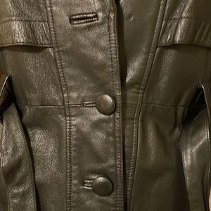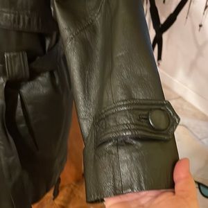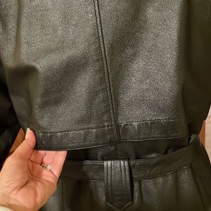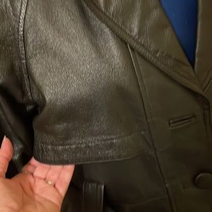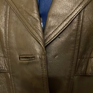Vintage leather jacket/coat with one button missing being the only major flaw but can definitely still look great as many won’t button that top button; the other flaws are very minor and commensurate with being vintage (please see pics) . Great coat I just can’t fit in it anymore
