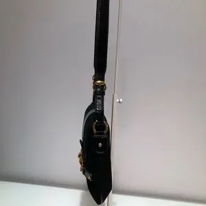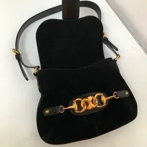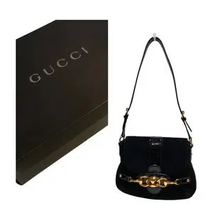 GUCCI Suede Black Handbag with Black Patent Leather Shoulder Strap