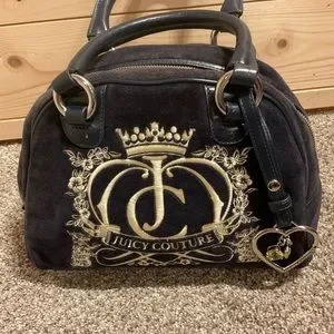 Y2K Juicy Couture Navy Bowling Bag Velour Handbag, COA, EUC