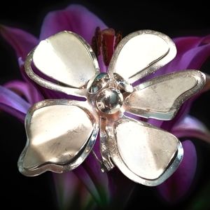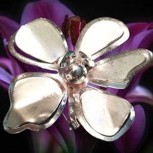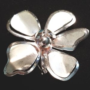 Vintage Mid Century Large Silver Tone Metal Flower Brooch Pin