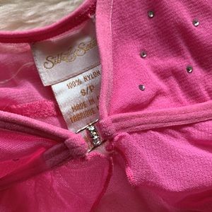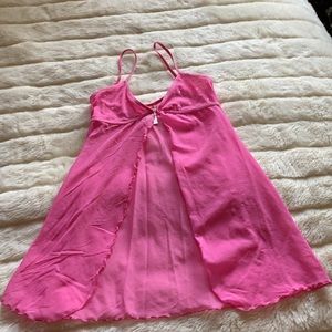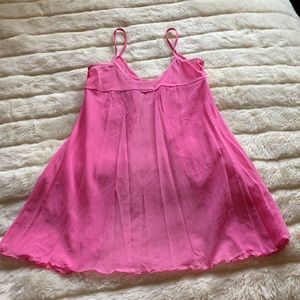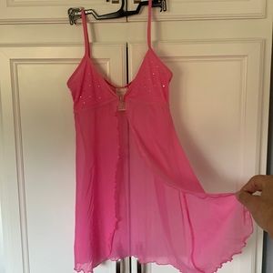 Silk&Satin pink sheer sparkling crystals open front chemise babydoll cami S