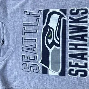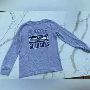 This thermal is fitted and perfect for layering. We cut out the tag because my son doesn’t like them but in the end he never wore this shirt because he didn’t like the fitted style of this Seahawks thermal. It is a 16/20 but feels more like a 14/16.