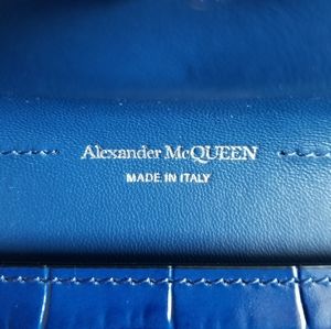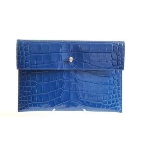 Alexander McQueen Skull Croc-Embossed Leather Pouch Indigo