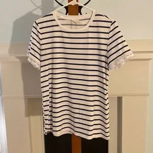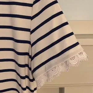 Nine is T with lace on sleeves. Excellent condition. Only worn a few times. Navy and white stripe.