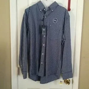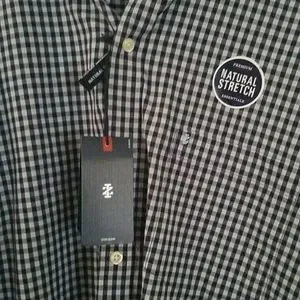 Blue plaid, Size M, Brand new with tags, Natural stretch premium essentials long sleeved, Collared button down dress shirt