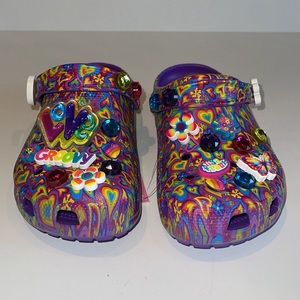 NWT CROCS Limited Edition Lisa Frank multicolor classic clogs with jibbitz.