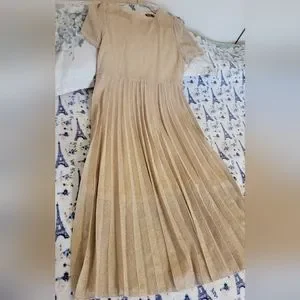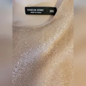 Beautiful Glittery Dress for Special Occasions. I wear it once on New Year's. Since I'm 5 feet tall, dress is very long on me. Fits like 2 XL but it stretches prettygood. Bottom part is pleated, with long zipper on the back. See pictures for more details. Home is pet and smoke free. Dress will arrive just washed. Thank you! This item qualifies for 2 items for $35 or $25 each.