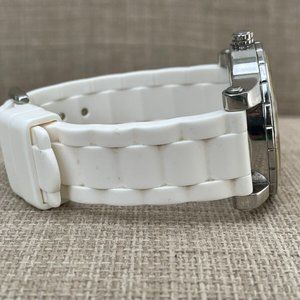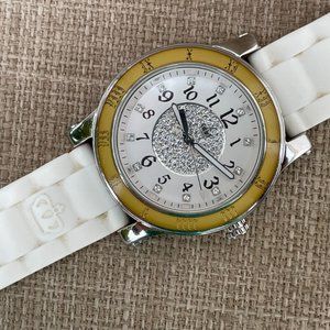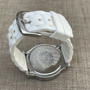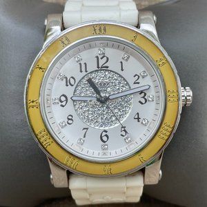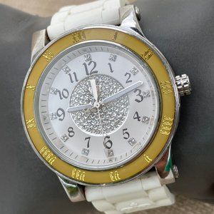Juicy Couture Ladies Wrist Watch Crytals Accent Face White Rubber Band Quartz