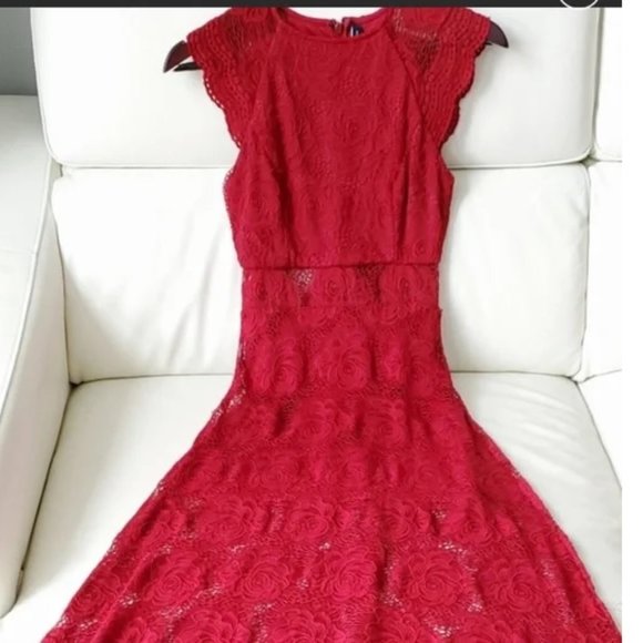 Beautiful Reveal and Conceal Red Lace Maxi Dress! Never worn by myself or the previous posher I purchased it from! It's a gorgeous dress, but it just sits in my closet as I don't have anywhere to wear it to currently. There is some pulling/fraying on the dress from being washed after purchase (elastic material in the dress frayed a bit and a couple of the threads of lace are pulled - never worn, just washed to make sure it was clean for selling as it has been tucked away). I tried to do my best to take a picture of this pulling/fraying, but it doesn't show up well on the camera as the elastic is clear. Please see last image for a look at the pulling/fraying that occurs throughout the dress. It wouldn't be noticeable when worn with the type of material and look of the dress, but I wanted to make sure I noted this as you can see it when you look closely at the material. I have been keeping this beautiful dress tucked away in my closet, but it's just sitting there and it's a shame because it's so gorgeous. I'd love to see it go to a good home!