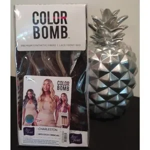 NWT! Synthetic HD Lace Front Wig part of the Color Bomb Collection! Stunning piano highlights!!! 5 inch lace parting, premium synthetic fibers, soft swiss lace, color tinted root, natural baby hairs, heat safe up to 400 degrees! Her name is Charleston and I'm selling her in the gorgeous specialty color DRP2/COCOA CHEESECAKE as shown on the model in picture #1 and in the color swatch in picture #13