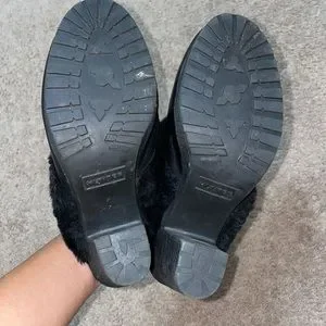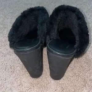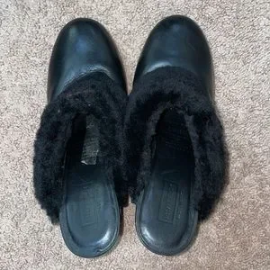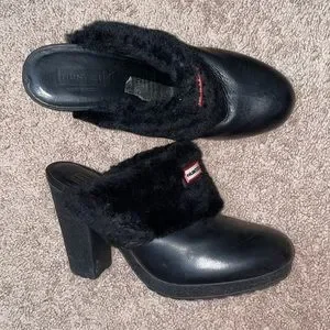 Hunter Bruson Women's Black Leather Shearling Mules Platform Shoes Clogs 9