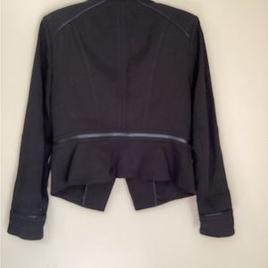 WHBM size 10 black blazer with buttons. Faux leather lines the pockets, collar and shoulders. Detailed stitching on shoulders. EUC