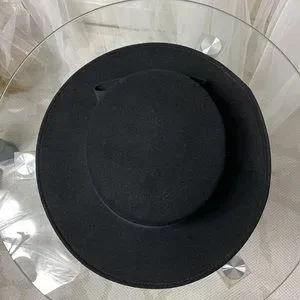 EUC! 100% wool doeskin felt! Colour black! Grosgrain Ribbon around with a bow!
