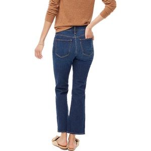 Button fly ankle-length five pocket jeans. Slight bootleg shape / flare at the hem. Featuring five pocket styling and a hint of stretch in denim; an easy feel and a little bit of give. These are a dark navy wash. By buying cotton products from J.Crew you're supporting more responsibly grown cotton through the Better Cotton Initiative.
