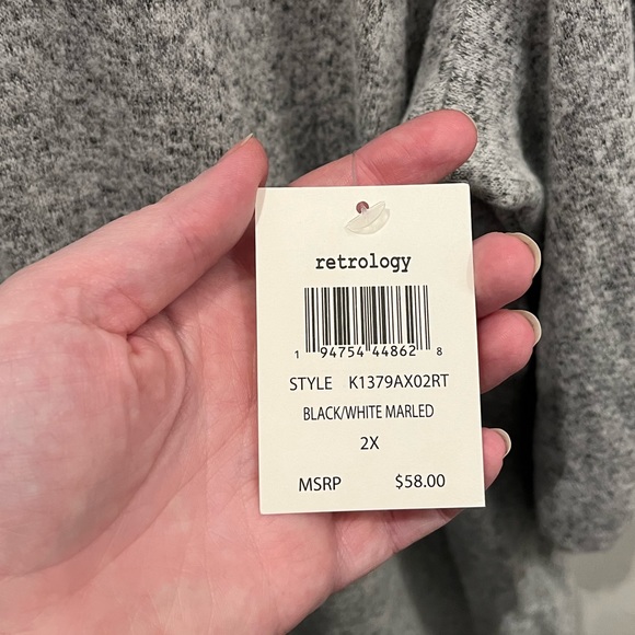 Retrology 2x Soft gray sweater with three-quarter sleeve, new with tag, rhinestone accents, very soft