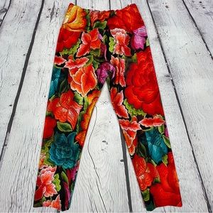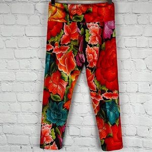 GOLDSHEEP CLOTHING floral embroidery print athletic yoga crop leggings, size S