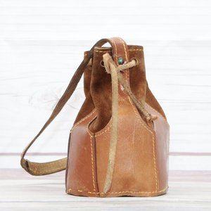 *Womens Brown Leather Made in Italy Drawstring Shoulder Bucket Bag