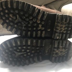 These boots are used but in very good condition they can last you many more years they are dark brown with a hunter design