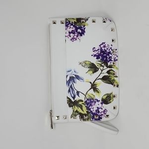 White House Black Market White Floral Faux Leather Clutch/Wrislet