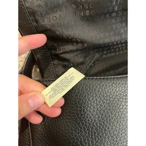 Interior features custom Kate Spade fabric lining, 1 slip pocket, and 1 zip pocket