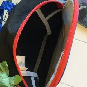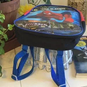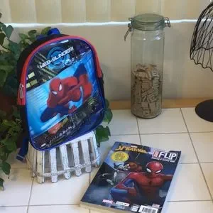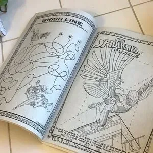 This gently used Marvel Spiderman 3-D Backpack has no rips/tears/stains (minus normal wear) and does have neat 3-D graphics. It has 3/4”W adjustable shoulder straps with a 2”H handle drop and closes with a red nylon zipper. The Coloring/Activity Book is 7 1/2”Lx10 1/2”H with loads of puzzles and stickers and coloring pages. Keep your lil tike busy on the drive to Gammy’s house with this exciting Spiderman combo in tow.
