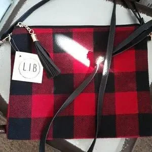 L.I.B New york cross body red& black checkered bag. new with tag.