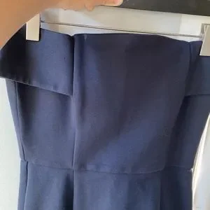 gorgeous navy off the shoulder dress. Beautiful constriction and quality. Stock photo is black version of the same dress. I am selling a navy one. Slight wear as shown but otherwise good condition
