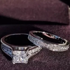 NEW 925 STERLING SILVER SET ENGAGEMENT DIAMOND RING, CUTE RING, SHINY RING.