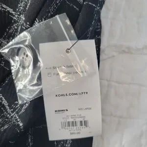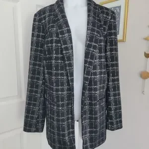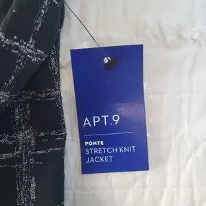 APT. 9 Ponte Stretch Knit Jacket Shine Plaid L NWT Black & Silver