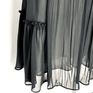 A soft sheer fabric has a gathered bust, with a gathered centre panel.