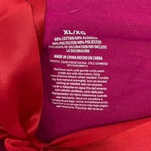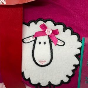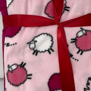 NWT women’s pajama set. The top is pink cotton, has a v-neck, and a cute white sheep with a pink bow on her head on the front. The pants are a lighter pink micro-fleece material, with a sheep design. They are really cute! Size XL (16-18).